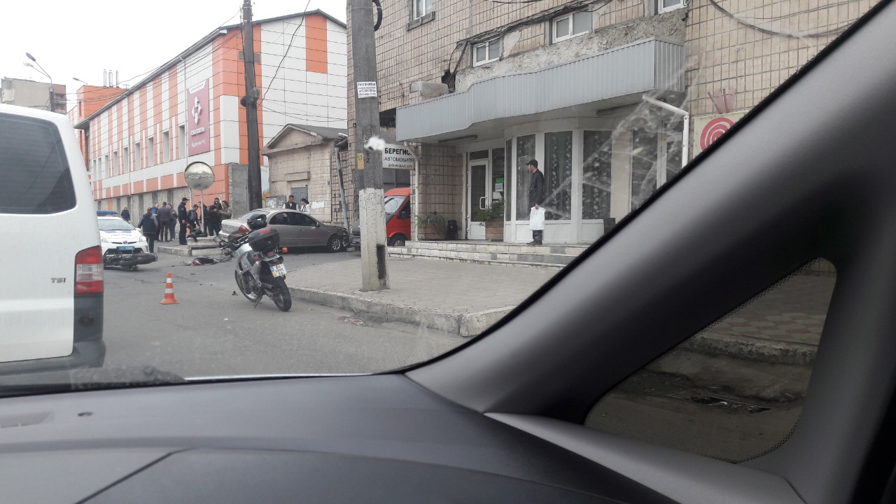 На 10-го Апреля на кругу как ехать от Аркадии / угол выезда со стороны Французкого, притерлись ниссан лифт и что-то еще, судя по всему ниссан как обычно выезжал на круг вторым рядом через разметку