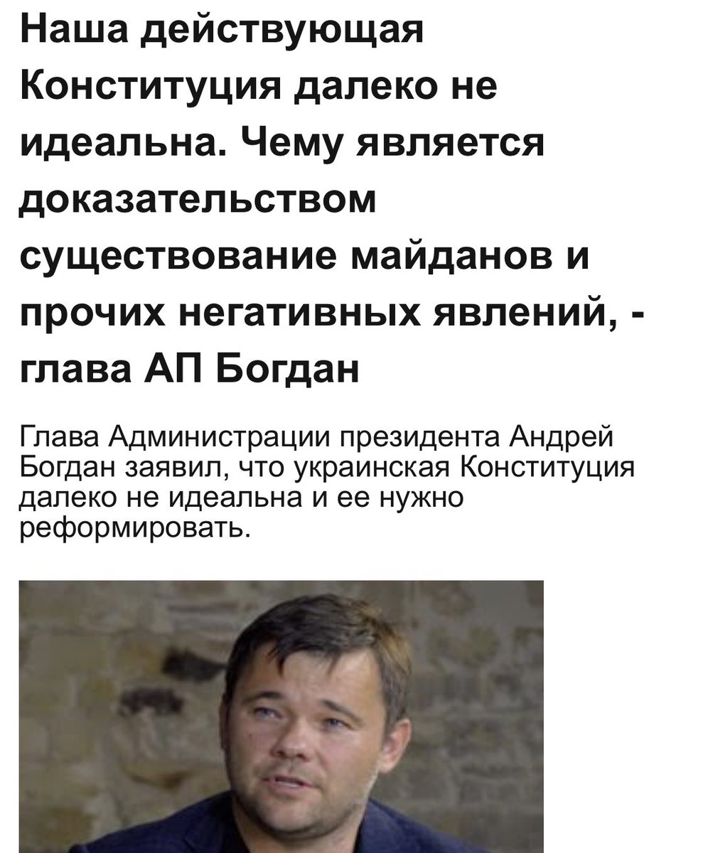 Наша действующая Конституция далеко не идеальна. Чему является доказательством существование майданов и прочих негативных явлений, - глава АП Богдан..
