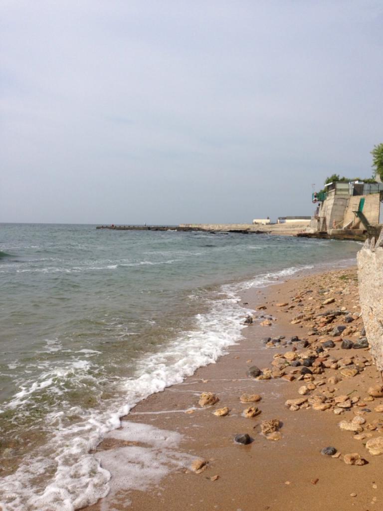 Пляж бывшего санатория "Россия". С утречка было даже свежо. До 10 часов жить можно. Вода -19.