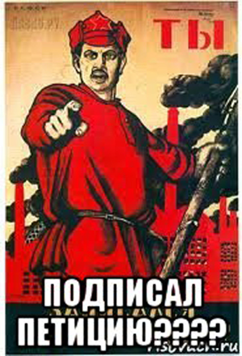 Петиция если и не даст многого- это один из способов привлечения к проблеме. Ты подписал? Спрашиваю третий раз? Есть гражданская позиция?