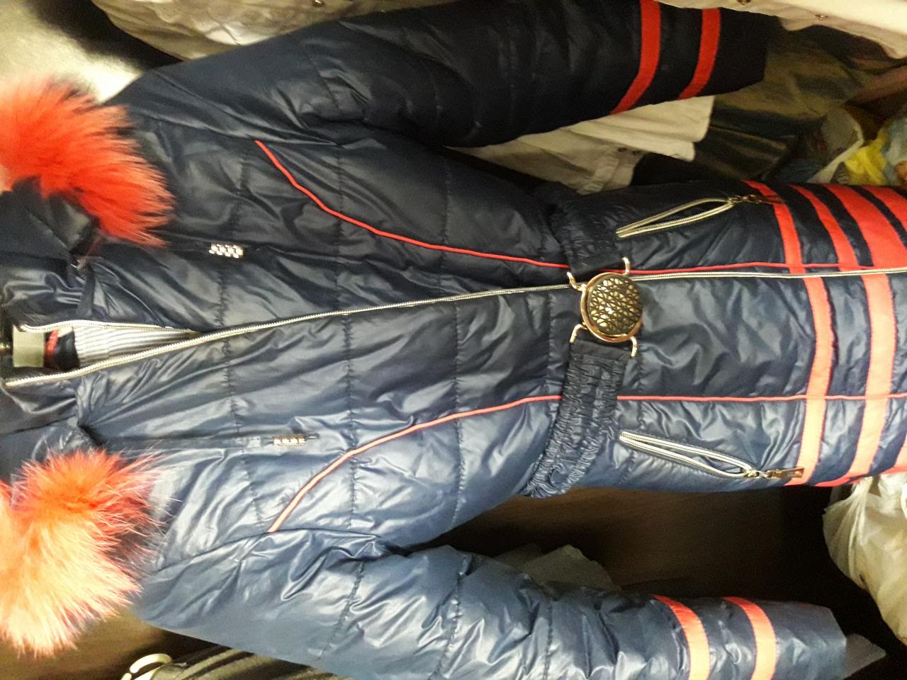 пальто зимние р.140-160 цвет синий с малиновым