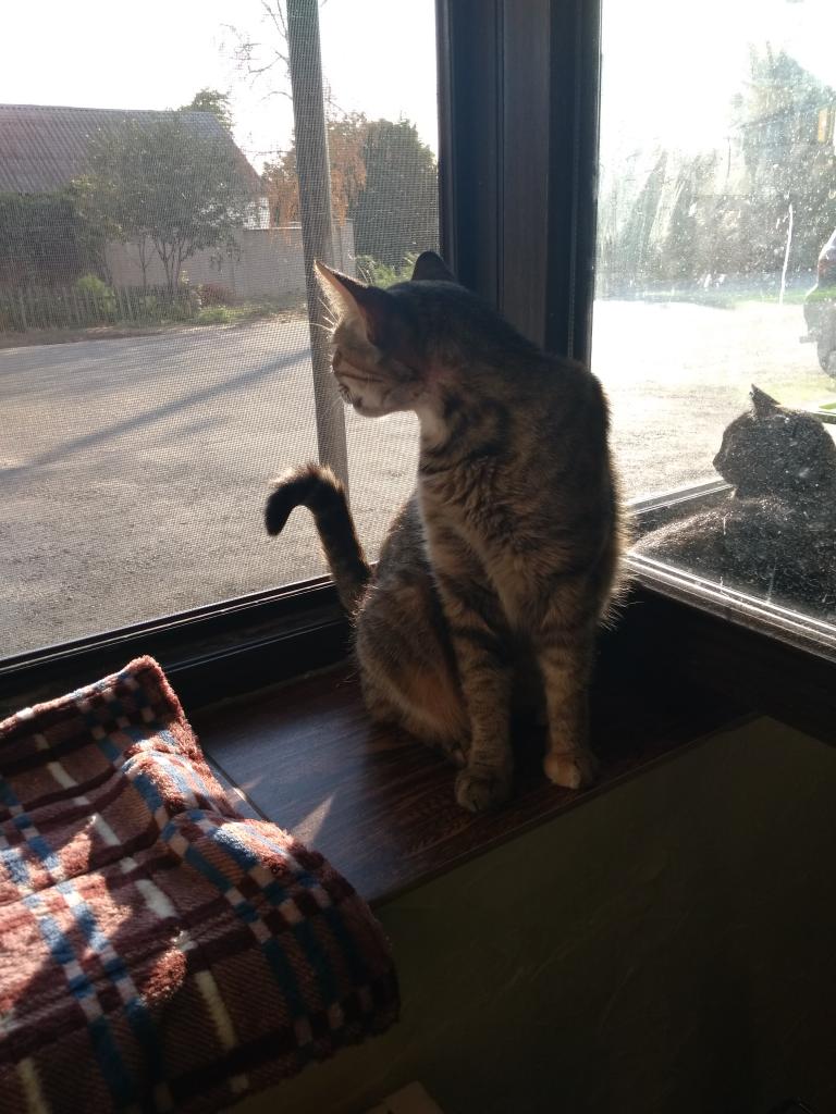 И вот не решив вопрос с Сеней, он до сих пор еще в Хвостусе, я увидела кошечку с раной на шее..