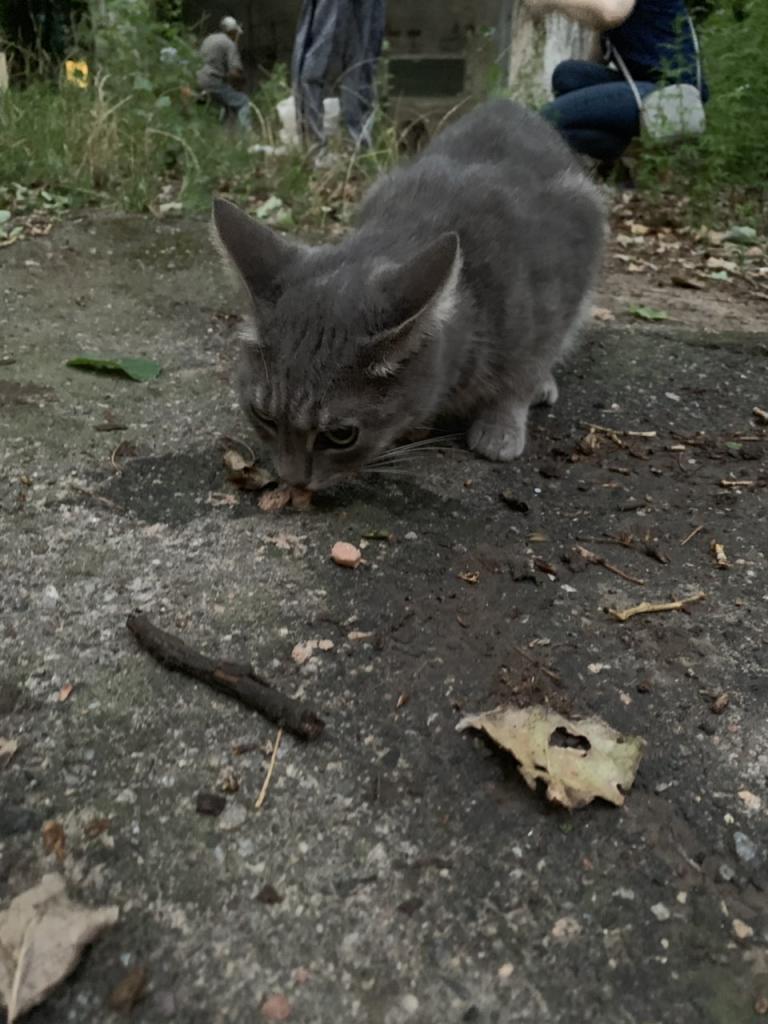 Вечером, после освобождения мы перевели котов к себе во двор дома М. Жукова 9. Оставили корм, воду, коробку для ночлега. Троих животных, особо слабых, девочки забрали ночевать в квартиру, утром выпустила на улицу.