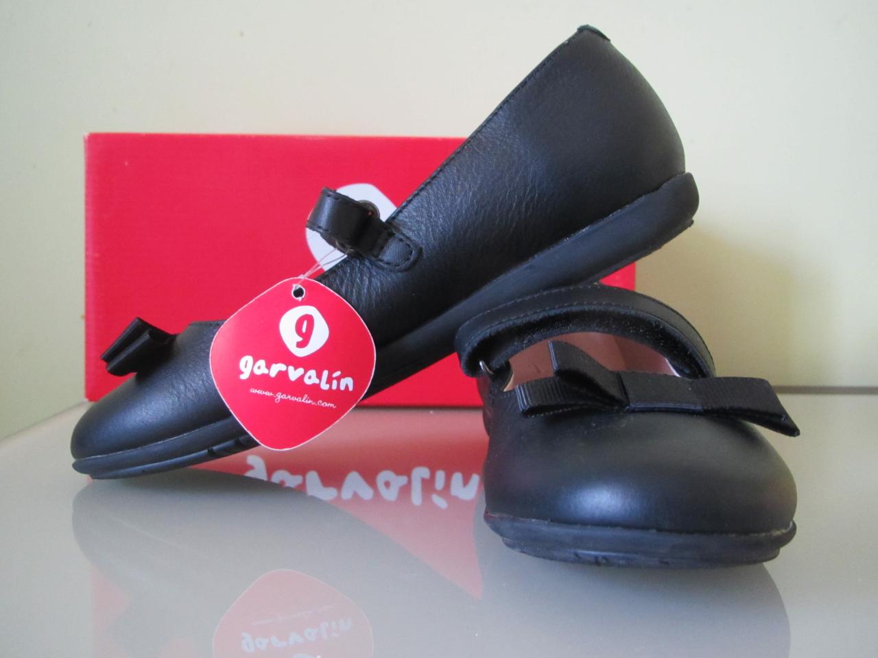 29. Комфортные балетки GARVALIN (Испания) из натуральной кожи в чёрном цвете с декоративным бантиком. Отлично фиксируются на ноге с любым подъёмом при помощи ремешка на липучке. Литая антискользящая подошва. Размер 32.