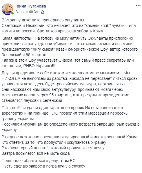 За то, что всегда ставил свои имиджевые и финансовые интересы выше государственных. Это я про ролик с возмущением от запрета въезда Добронравова вспомнила.
