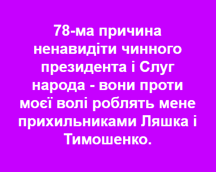 За красивые лживые обещания уйти, если нарушит закон. Если бы он отходил от Банковой на километр за каждое нарушение, то до конца каденции уже эмигрировал бы нафиг из страны!