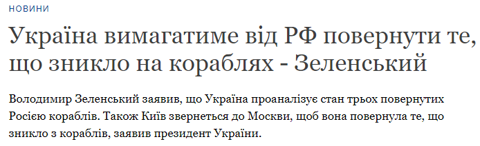 Ролекс, а ты в курсе что корабли передали Украине на "ответственное хранение"? Ты хоть сейчас осознаешь уровень идиотизма Зелебобы? В какое гавно он вступил когда подписал лично или через своих представителей бумаги относительно этого? Пуйло перед Нормандией снимает с себя балласт и кроме того откровенно глумится над идиотом, который у нас вместо президента, надеюсь, временно. Да не то, что глумится а сцит ему прямо в рожу.