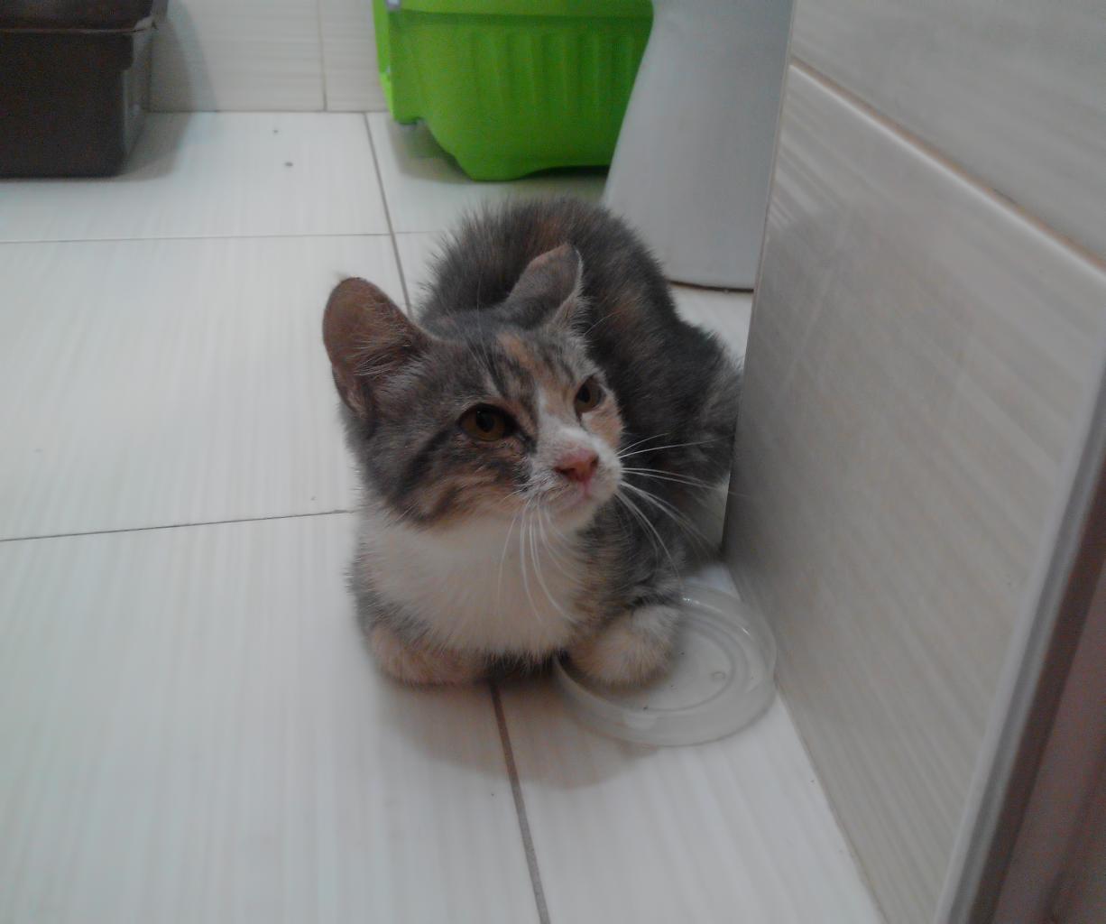 Этого симпатичного уличного котенка (девочка, месяцев 6-7) я не дал растерзать собакам. У животного была травма головы. Она не так хорошо как здоровые ориентируется в пространстве,немного "подтормаживает". Но хорошо ест, ходит только на лоток, гуляет (во дворе, под присмотром), мурчит, тянет лапки, просится на руки)) Ругается, когда ей что-то запрещаешь. Очень любопытная симпатяга.