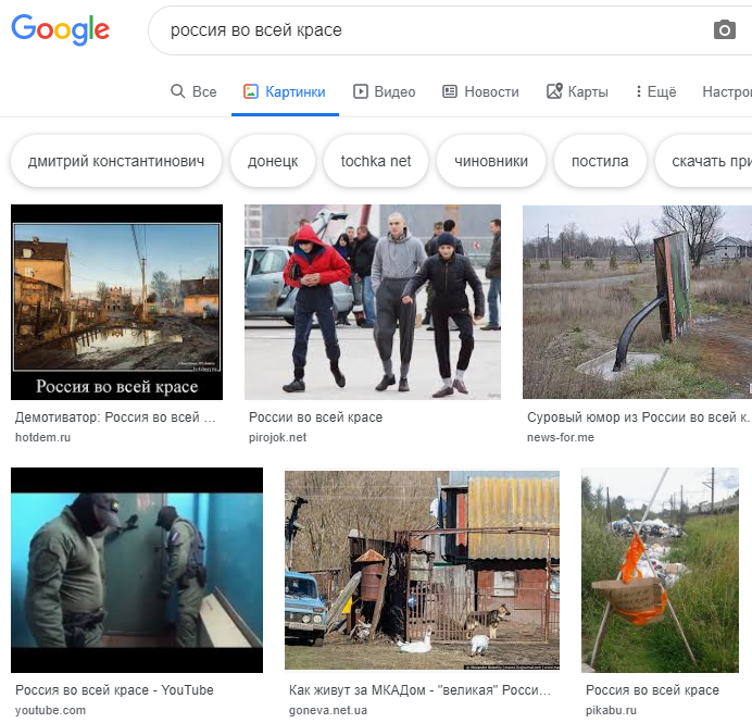 Хорошо, что россиянцы себя показывают, иначе как бы мы знали, что нам туда не надо? А кто не следит за их помоями, мечтает тут русский мир построить.