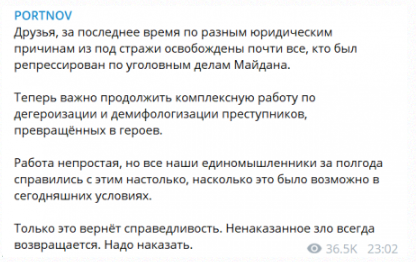 Беркуты уже заявили, что они не у дел с Януковичем и уверены, что Майдан и беркутов с крыш расстреляли с подачи лидеров Майдана и перечислили все фамилии, которые и раньше звучали со стороны РФ (Парубий, Пашинский, глава свободовцев и т.д.)