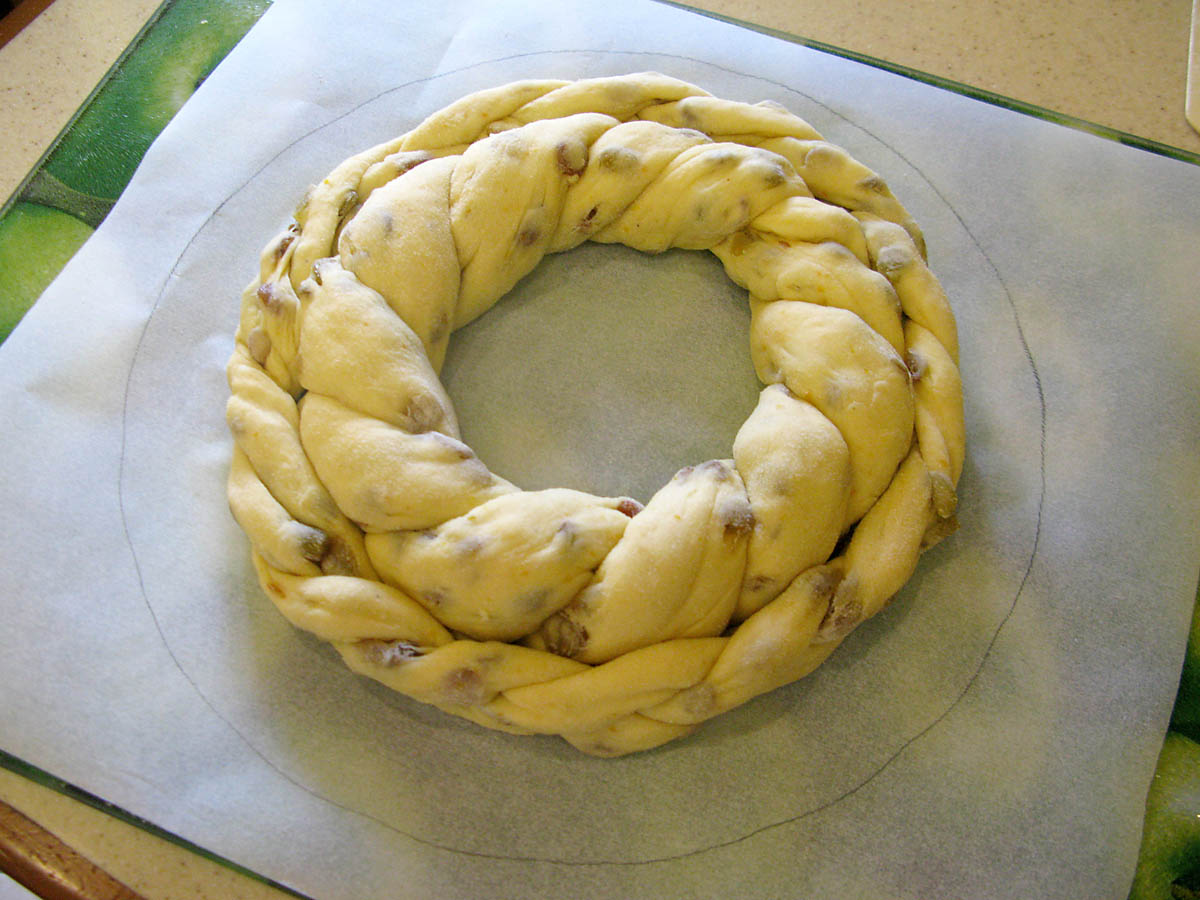 Надо внешний круг накладывать с натяжкой, тогда при расстойке и выпечке