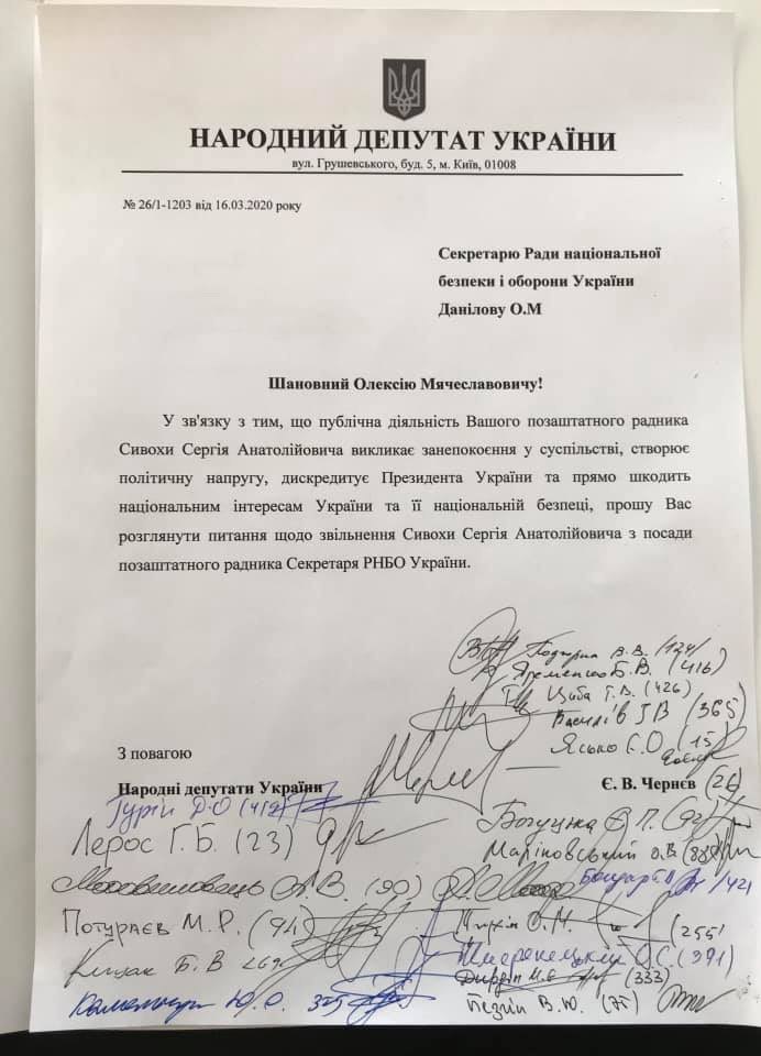 Депутаты зелёных обращаются к Данилову уволить Сивохо: