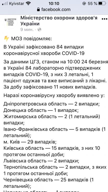 МОЗ. Оперативна інформація про поширення коронавірусної інфекції 2019-nCoV