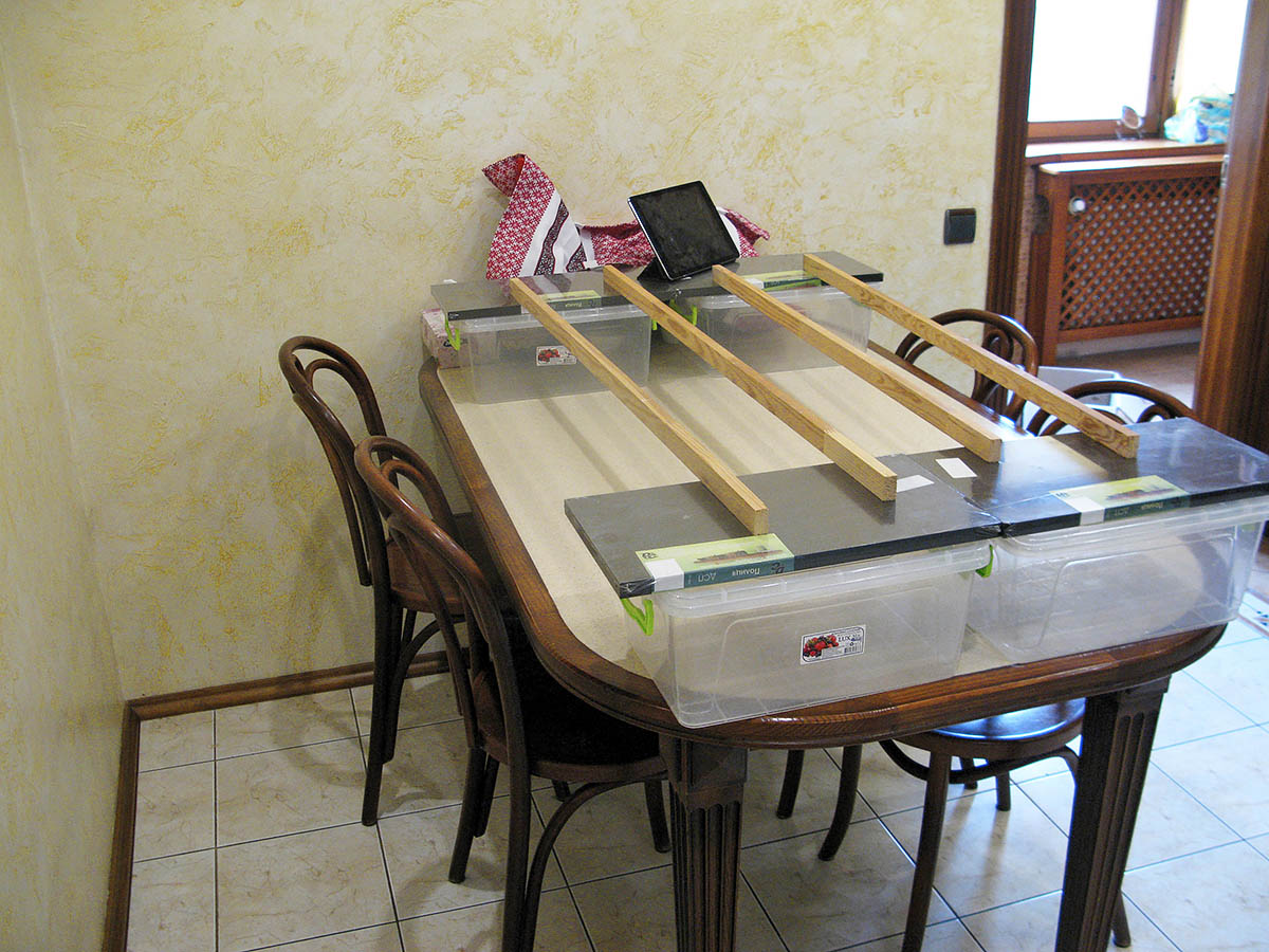 и какие-то бесхозные полочки ДСП. Собственно, тут главное рейки, а опереть