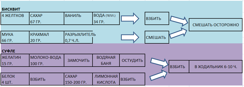 Данного количества хватает на один корж, и сверху "залить" суфле - на обычную чугунную сковородку,