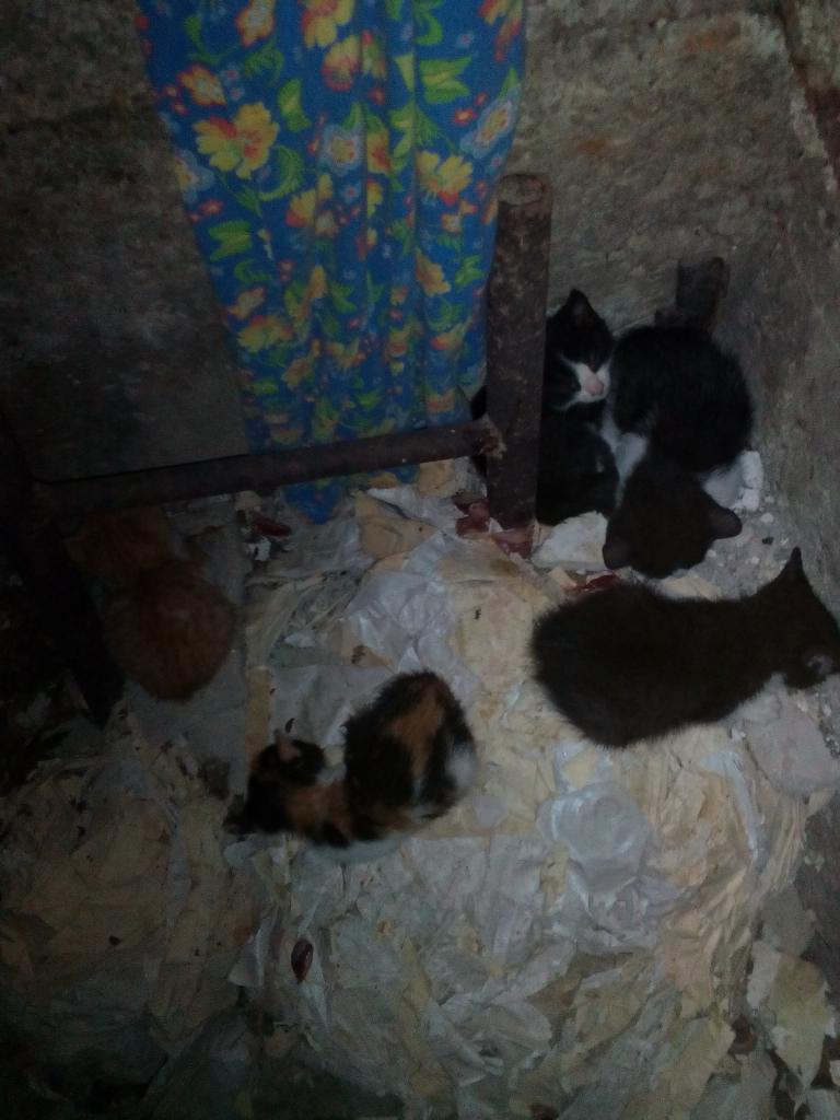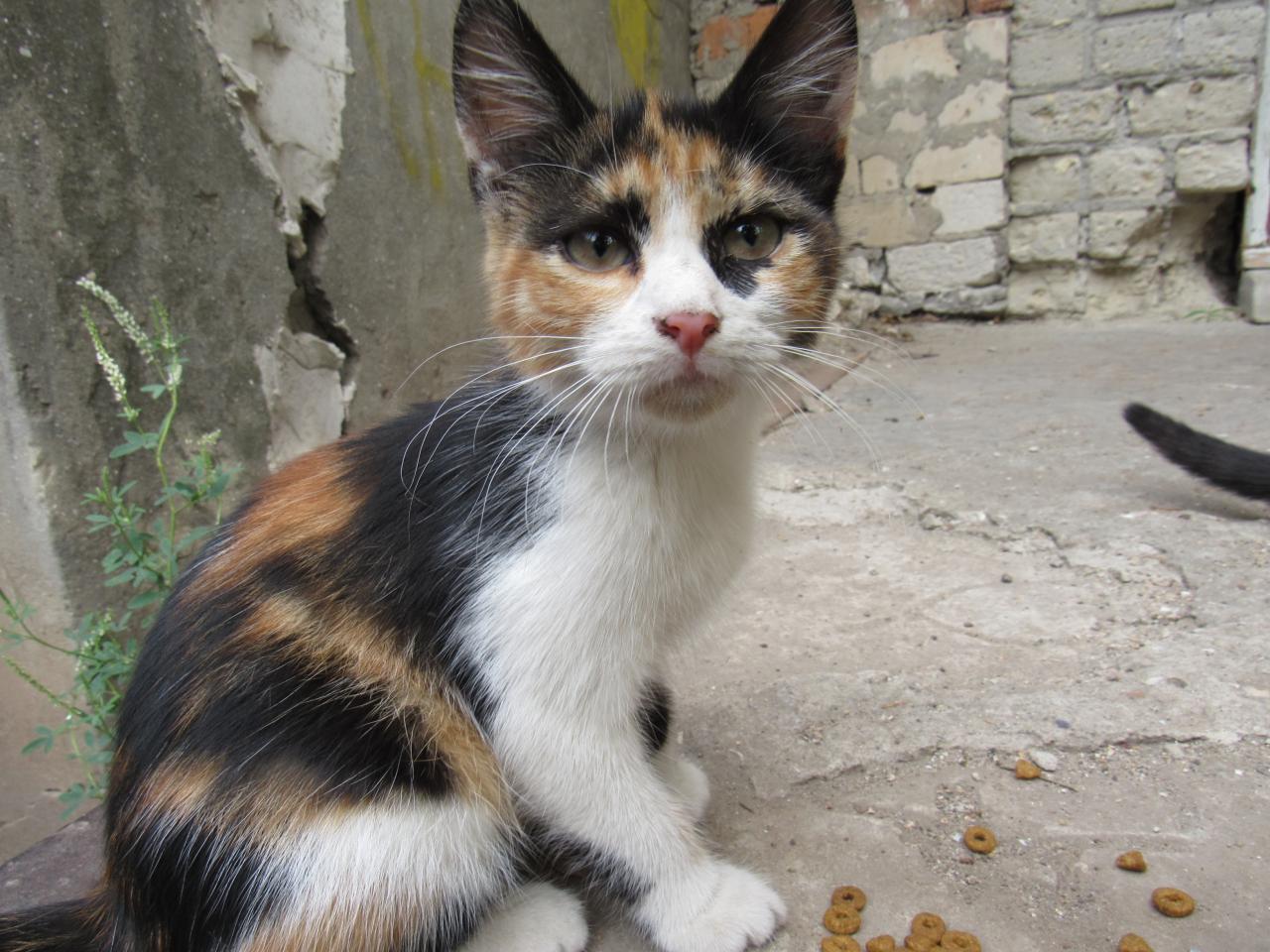 Котят оказывается трое, все трёхцветки. Та что пропала, сказали, что её забрали в семью. Две девочки и их мама по-прежнему на улице((