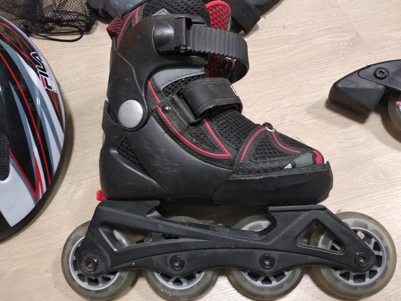 Подшипники: Fila ABEC 3 - одни из лучших подшипников, которые установлены на детские ролики. Сочетают в себе и большую скорость вращения, и долговечность. Колеса: Fila жесткость 82а - в меру мягкие, в меру жесткие. Сделаны на основе полиуретана, с добавлением каучука, отвердителей и тд. Для размера роликов 29-32 идут диаметром 72мм.