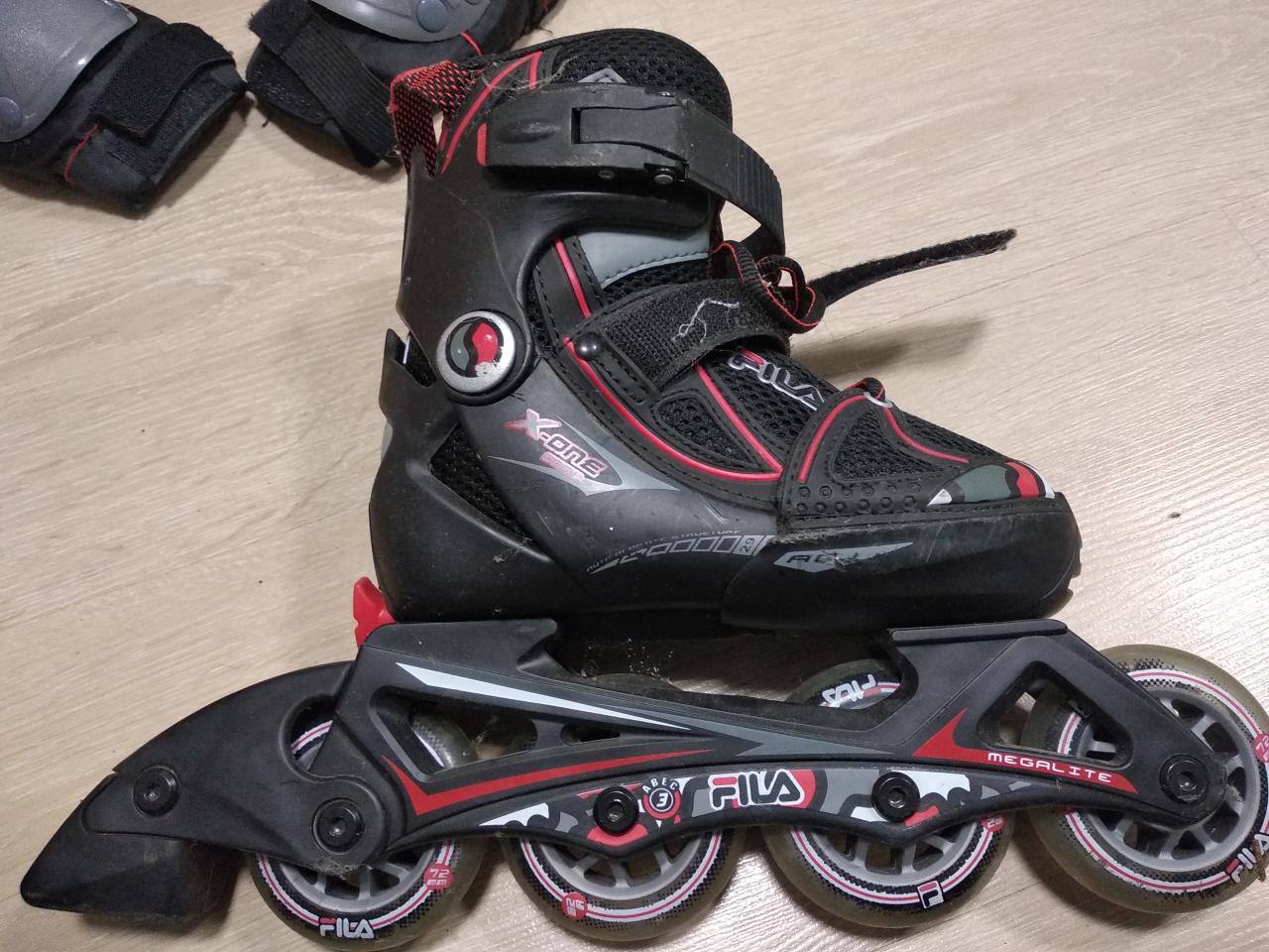 Подшипники: Fila ABEC 3 - одни из лучших подшипников, которые установлены на детские ролики. Сочетают в себе и большую скорость вращения, и долговечность. Колеса: Fila жесткость 82а - в меру мягкие, в меру жесткие. Сделаны на основе полиуретана, с добавлением каучука, отвердителей и тд. Для размера роликов 29-32 идут диаметром 72мм.