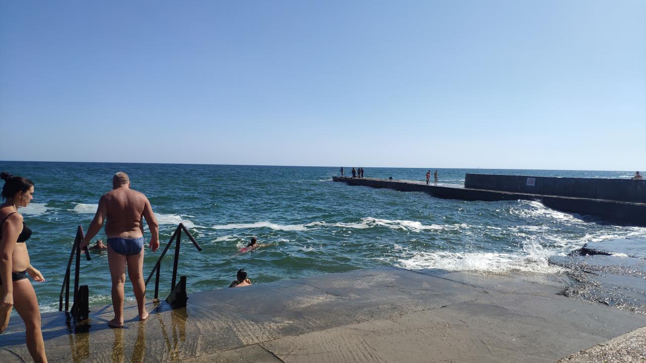Спасибо, поднялась и пришла . Сейчас , Молодая Гвардия, людей так себе, ну немного. Это моя погода , моё такое любимое море. Не жарко , ветерок, кому-то ветер. Тёплая чистая вода, у берега взболомучено с песком, но дальше шикарные волны и чисто, корнеротов особо и нет