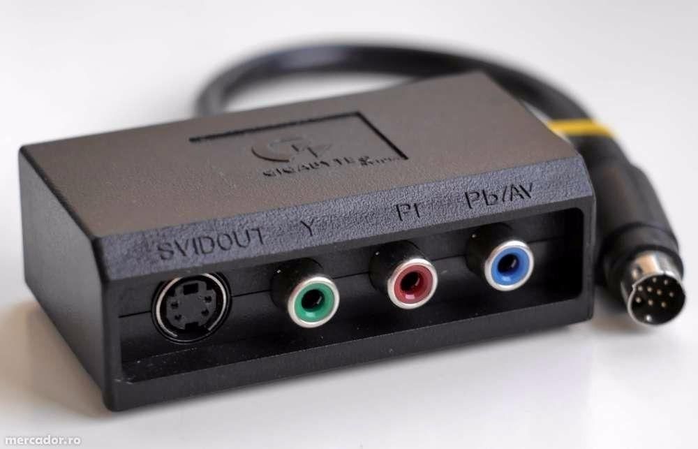 13. Переходник GIGABYTE P/N: 12CF1-10S012-01R для подключения телевизора к видеокартам c универсальным 7-pin S-video коннектором. На устройстве имеется переключатель: TV SvidOut / HDTV Y-Pr-Pb/AV.