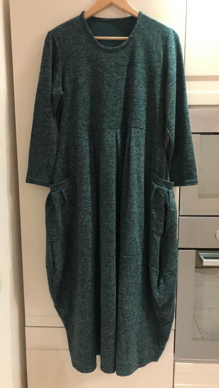 1) Трикотажное платье бутылочного цвета, размер L-XL, тянется, 3/4 рукав - продано