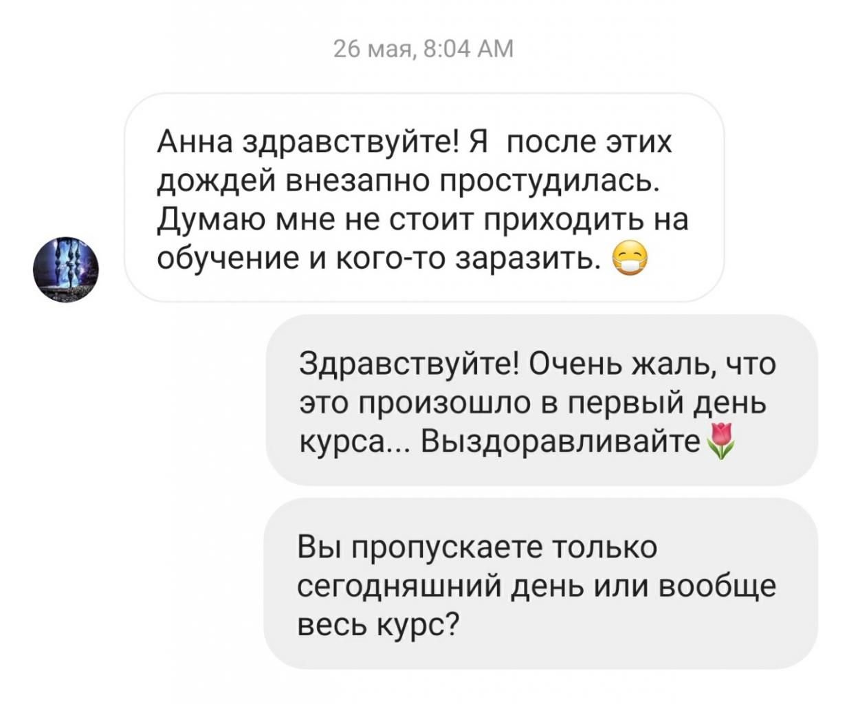 Но!!! По собственной инициативе, мы пошли на встречу ученику, даже когда он подтвердил явку и не пришел на второй день обучения!