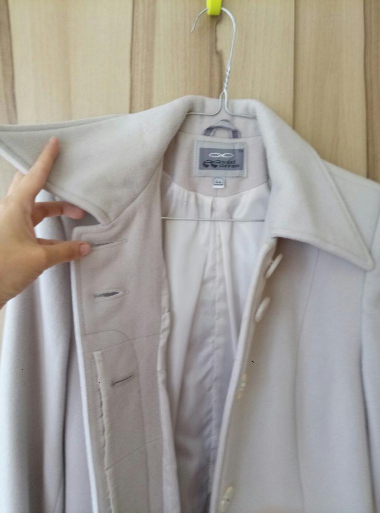 Пальто деми. размер 44. Красивый бледно серый. Состояние хорошее. Фасон по фигуре, немного приталенный. Смотрится очень строго. Длина 92 см, ширина в плечах 40 см, ширина в груди 42 см.