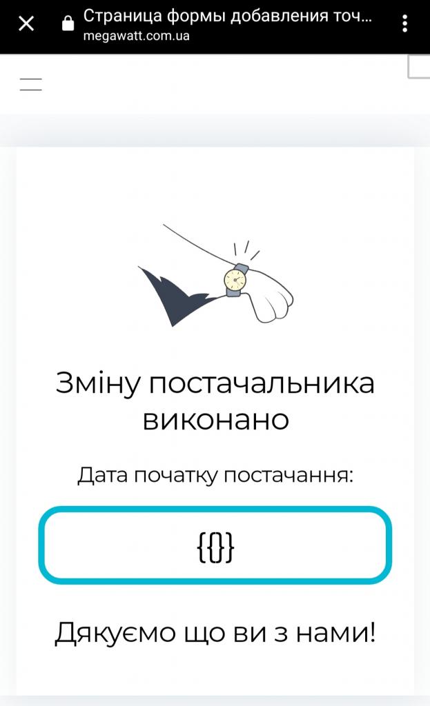 Ваша заява на приєднання до договору поставки природного газу успішно пройшла перевірку. Розпочато процес зміни постачальника для точки комерційного обліку EIC 56XM******