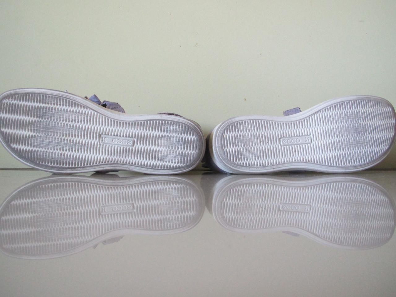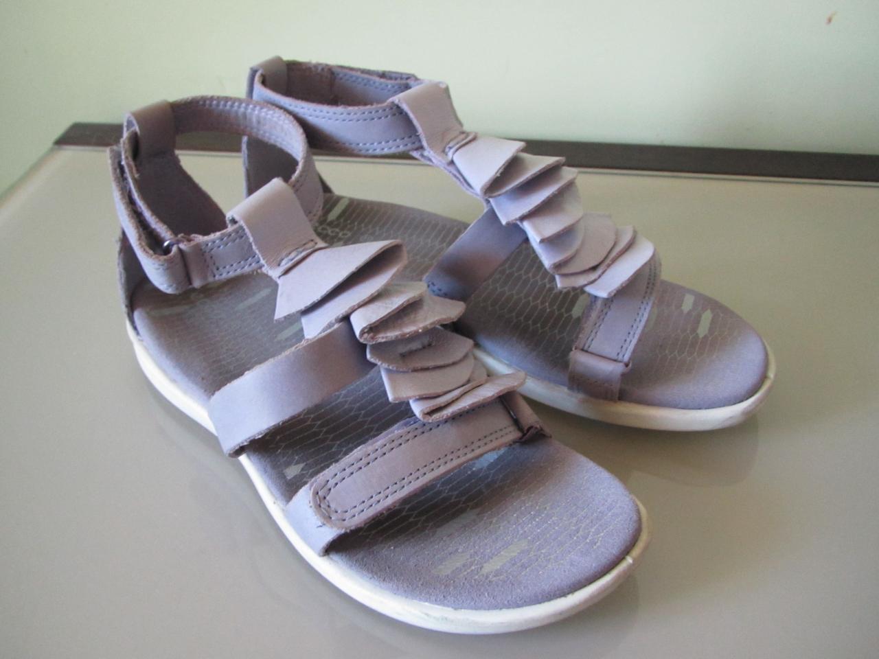 33. Замечательные кожаные сандали ECCO (Дания) высокого качества с рюшами нежного и приятного сиреневого цвета. Лёгкие и комфортные, застёжки на липучках удобные, позволяют отрегулировать обувь по ноге. Состояние новых (одевались один раз на фотосессию). Размер 31 (длина по стельке 20см).