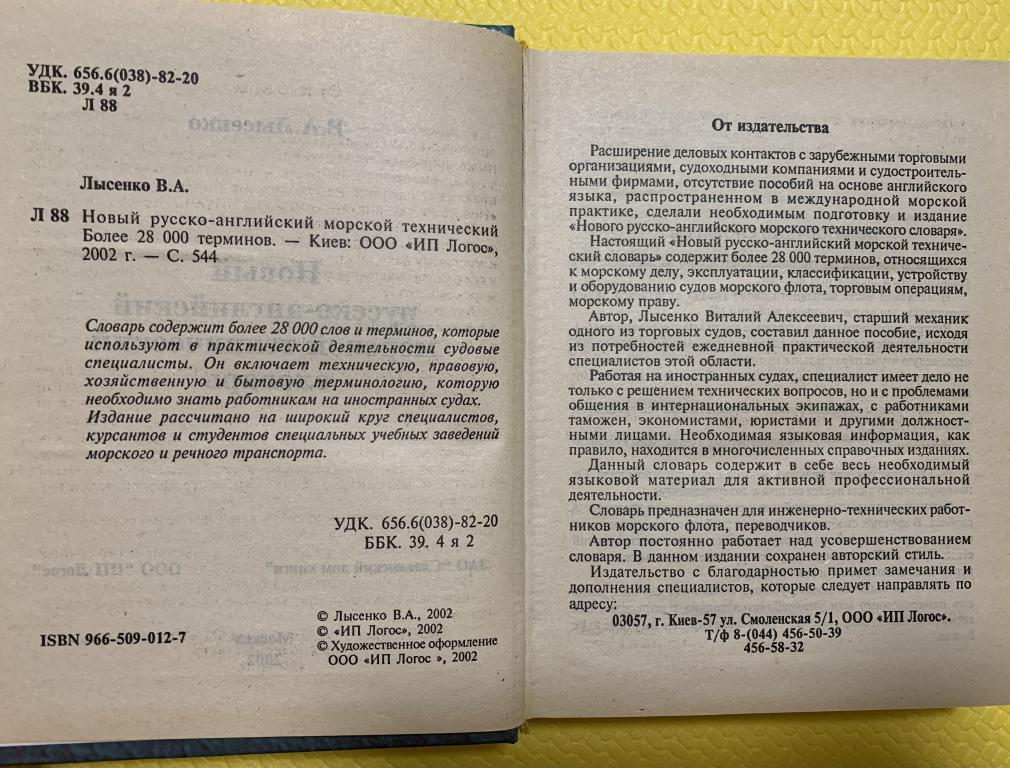 "Новый русско-английский морской технический словарь" Лысенко В.А. содержит более 28 000 слов и терминов.