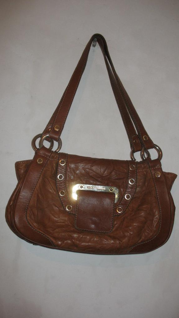 100% кожанная сумка Dolce & Gabbana б/у, из цельной кожи, коричневого цвета, слегка трапецевидной формы.Размеры длина внизу36 см вверху 29 см, ширина 23 см, длина от середины ручек к середине сумки 30 см.Внутри одно отделение, по бокам внутри 3 кармана, 1 на змейке.Подкладка плотная, шелковистая, в отличном состоянии из качественного материала, вся в надписях Dolce & Gabbana. Сзади кожа немного затерлась и изменила цвет из-за джинсов, а так везде в отличном состоянии. Цена 600 грн. тел. 0677498331 Оксана. Поселок Котовского