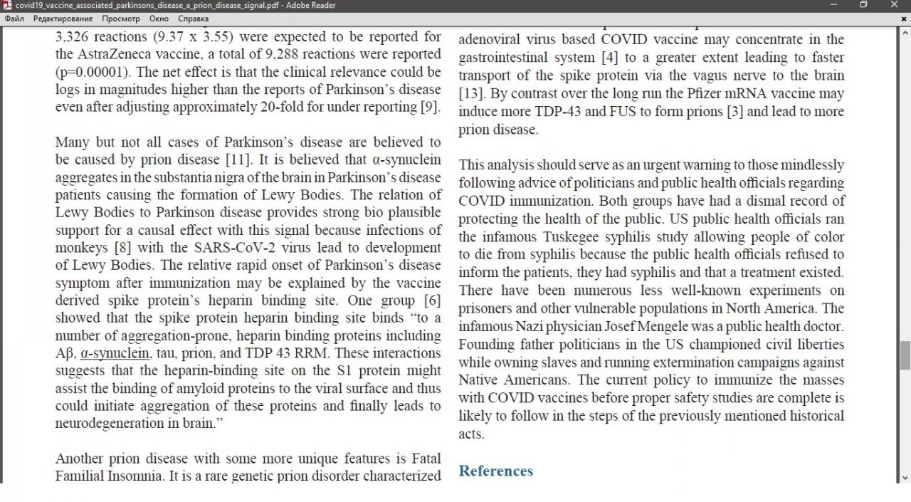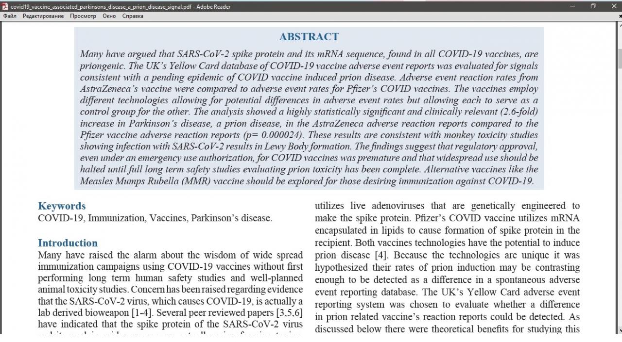 "... Полученные данные свидетельствуют о том, что одобрение регулирующих органов для COVID-вакцины, даже при наличии разрешения на экстренное использование,*было преждевременным, и что*широкое использование следует прекратить до тех пор, пока не будут завершены полноценные долгосрочные исследования безопасности,*оценивающие прионную токсичность."
