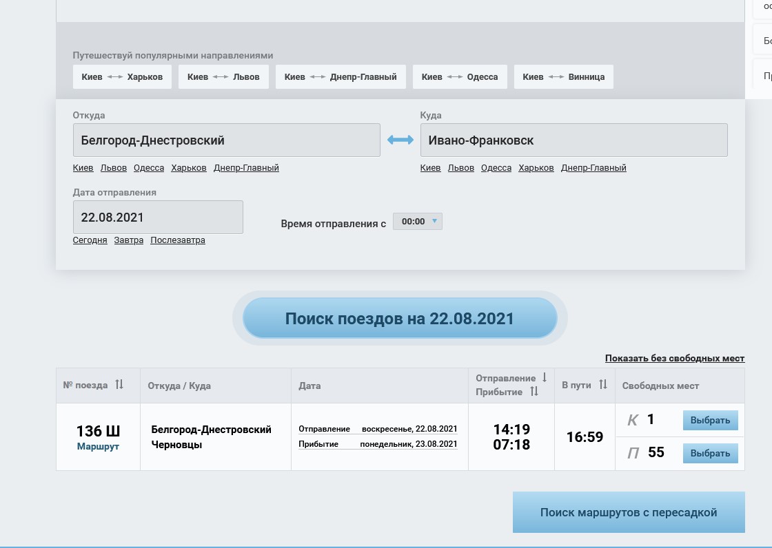 Попробуйте искать Белгород-Днестровский - Ивано-Франковск