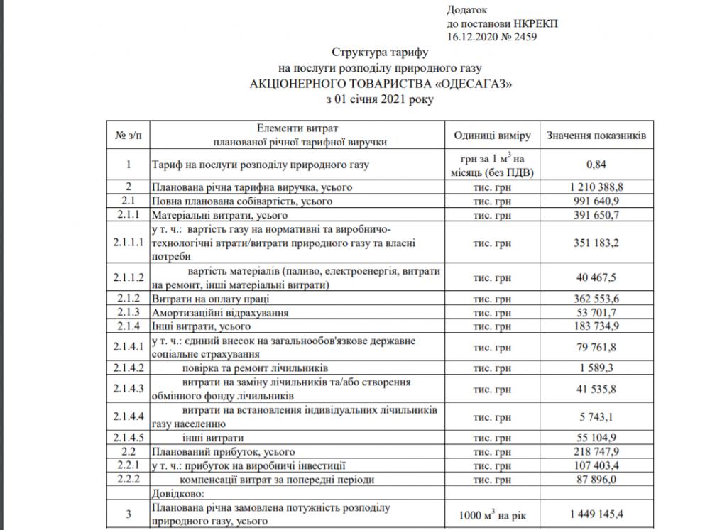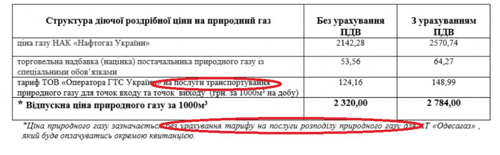 *встановлений НКРЕКП для АТ "Одесагаз" із розрахунку місячної вартості одного кубічного метра замовленої потужності).