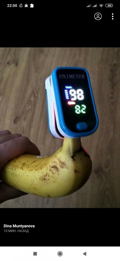 Не менее важно, чтоб пульсоксиметр был качественный ... а не такой, что показывает сатурацию и пульс — причем, высокие ! — у ... фруктов: