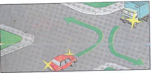 Кроме того, что ПДД запрещают делать так, как нарисовано на первой картинке. Ибо на таких дорогах выезд на встречную вообще запрещён. В отличие от второй картинки. Почему? Потому, что может случиться встречная машинка, пытающаяся ехать прямо, но которую Вы не видите из-за поворачивающей... Вот такая практика тогда будет.