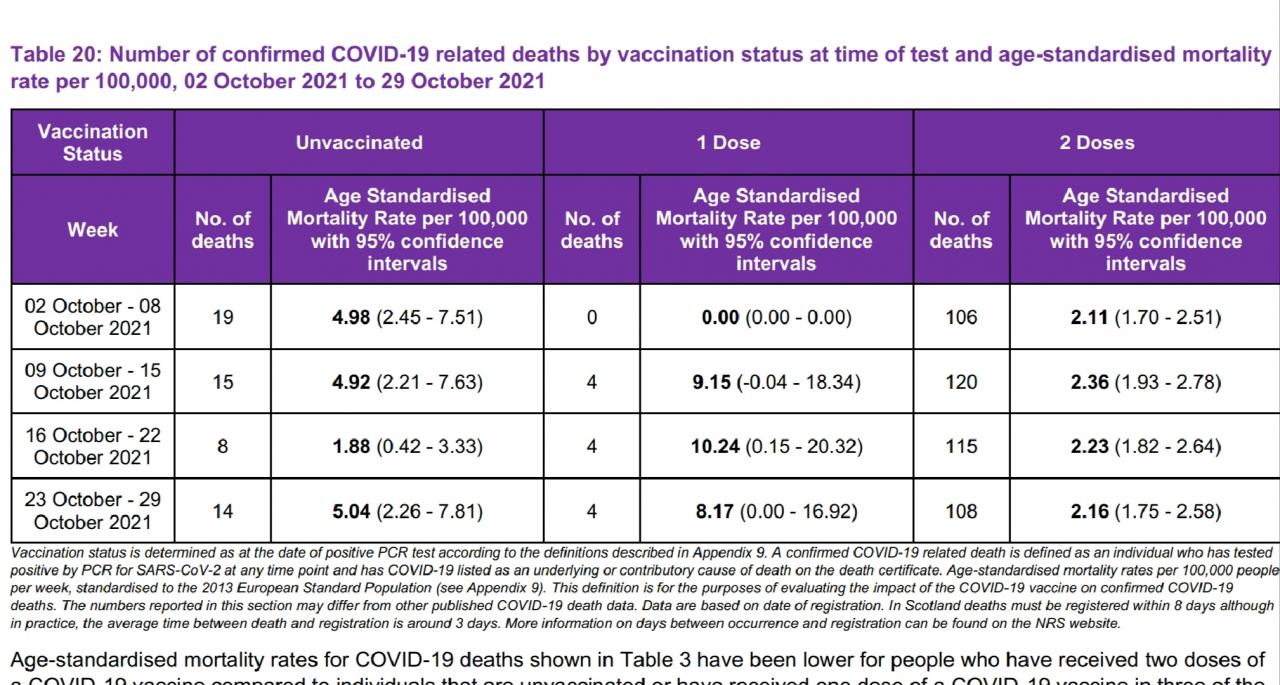 У вас повылазило или вы буквы плохо различаете? Age Standardised Mortality Rate видите в этой таблице? Разницу между не привитыми и привитыми видите ? И это при том что % привитых в Шотландии весьма приличный.
