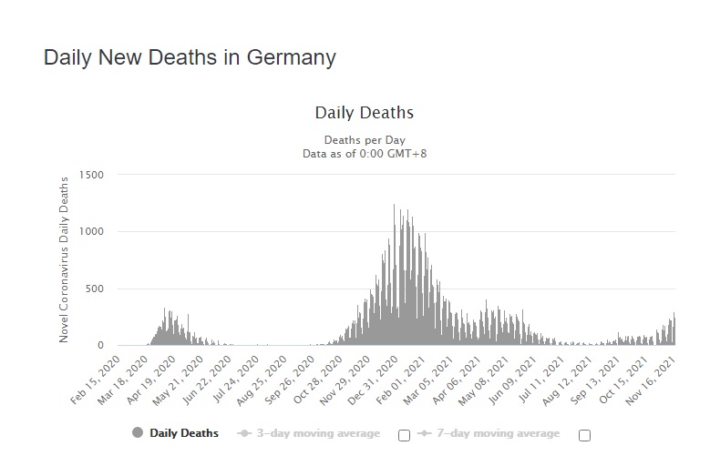 А вообще, судя по стремительному росту инфицированных коронавирусом в среднеевропейском регионе (Германия, Австрия, Чехия и т.д.) к концу ноября-началу декабря ожидается увеличение летальных случаев как минимум вдвое, а то и больше, поскольку смертность растет не линейно. То есть, может достигнуть и даже превысить те значения, которые наблюдались в худшие времена еще до вакцинации.