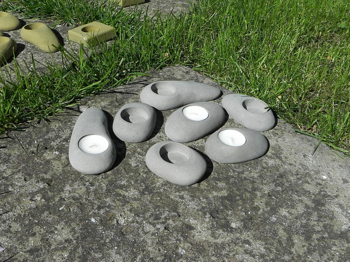 Предлагаю бетонные подсвечники, под свечи-таблетки.