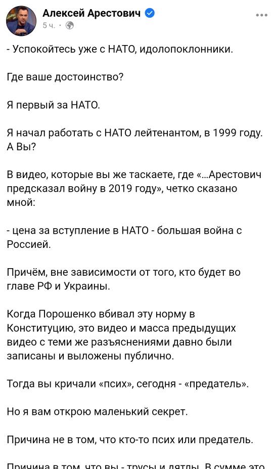 Т.е все таки по утверждению Люси это все из за Порошенко,который внёс НАТО в конституцию? А Люся не забыла,что война началась в 2014, когда не было никакого НАТО, а был нейтральный статус?