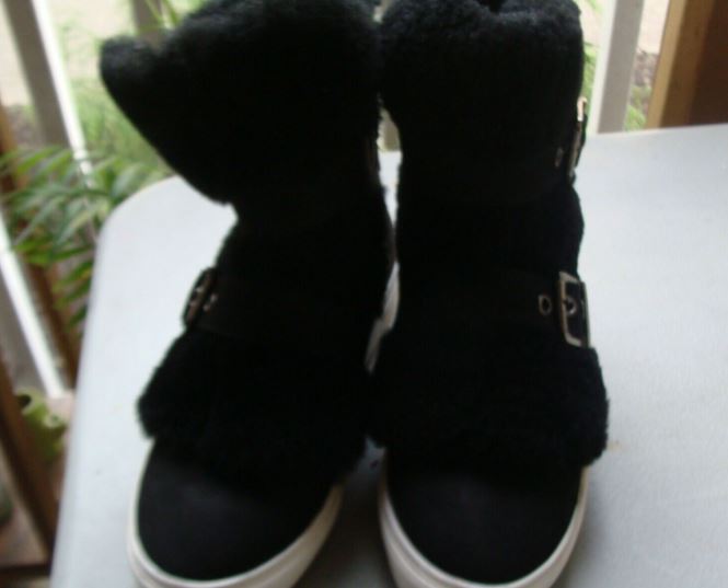 Женские черные кожаные ботинки на молнии сбоку- Luxe De Leon, размер 8.5 , ширина - средняя ножка. Внутри меховая стелька (овечка) , и мех овечки, но снаружи.