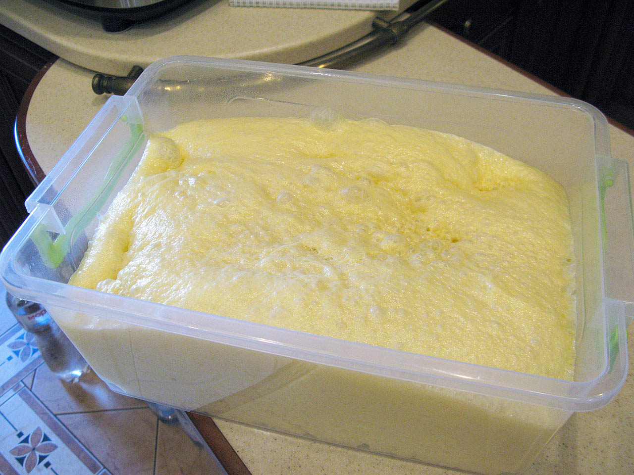 Выбраживание 1го теста 12часов 19град, расстойка 4.5часа 30град.