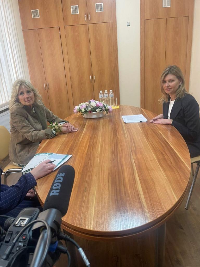 Дружина президента США Джо Байдена вранці в суботу, 7 травня, відвідала школу в Бухаресті, де поспілкувалася з українськими та румунськими освітянами, а також з українськими матерями та з дітьми що зараз перебувають у Румунії. Як повідомляє CNN, Джилл Байден супроводжувала перша леді Румунії Кармен Йоханніс.