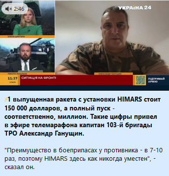 Кстати на днях тут проскакивала инфа что один залп М142 Химарсенка стоит лям баксов, т.е. стоимость одной ракеты выходила в 166к. Я решил порыться и проверить.