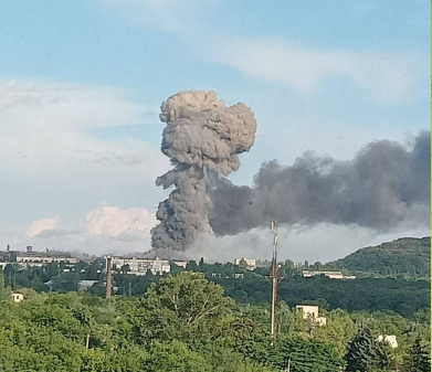 СМИ сообщают, что взрыв произошел в районе машзавода, где стояла техника россиян.