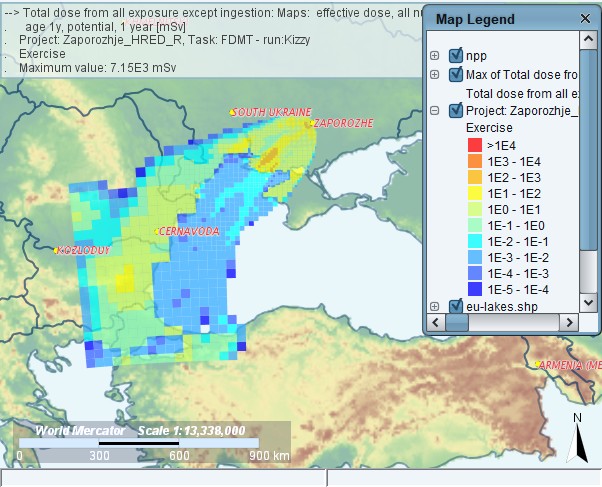 Если же исходить от аварии на ЧАЕС, то в случае катастрофы площадь потенциальной зоны отчуждения составит до 30 тыс. км (как 10 Чернобыльских зон отчуждения), а Запорожская область фактически станет непригодна для проживания и хозяйства. При этом площадь потенциальной загрязненной территории – до 2 млн км², а степень заражения других территорий Украины и Европы, России и Беларуси будет зависеть от ветра.