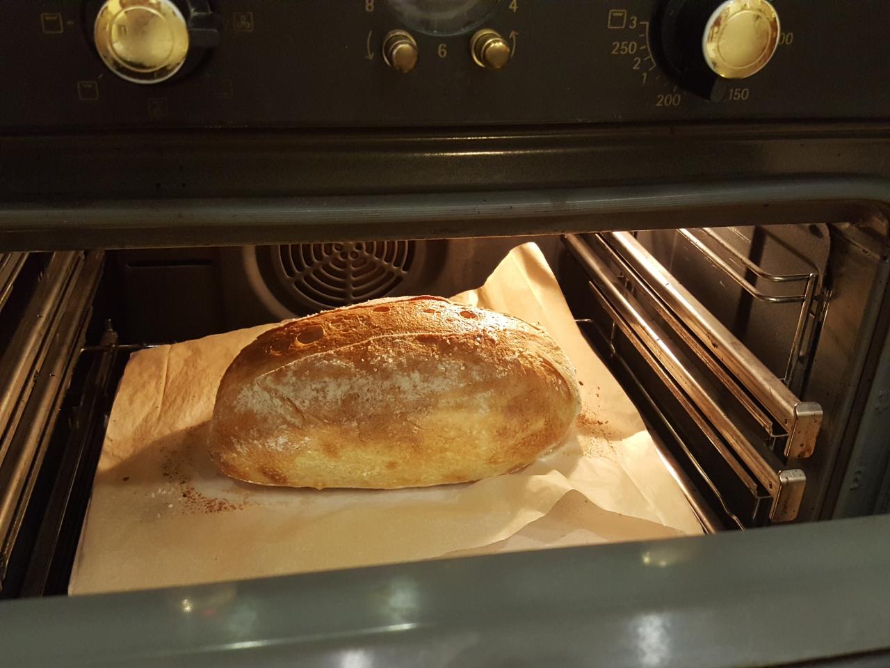 Рецепт белого хлеба самый простой. Взяла Манитобу и их универсальную муку для выпечки в равных пропорциях, холодная вода, сахар, соль, оливковое масло, 25 грамм закваски. Замесила, час постояло тесто, потом несколько складываний и в холод на 18 часов. Утром тесто поставила отогреваться на час в духовку с включённой лампочкой, сформировала батон, затем расстройка минут 40-50. И в духовку.