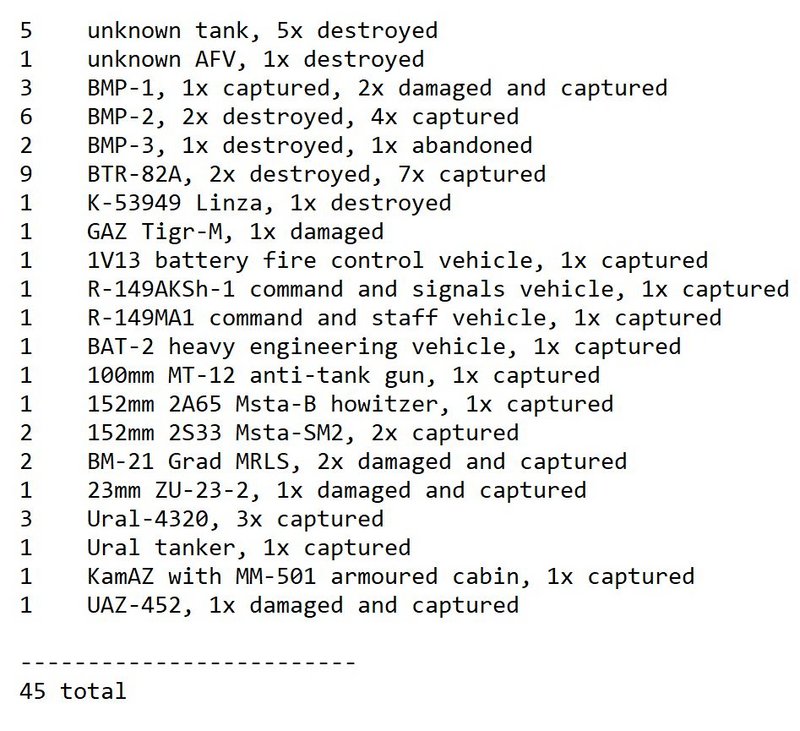 Overview of Russian equipment losses added on 08/09/2022