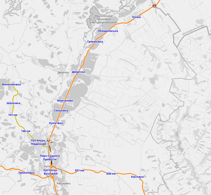 Чугунка из Валуек идет по восточному берегу Оскола, но очень близко.