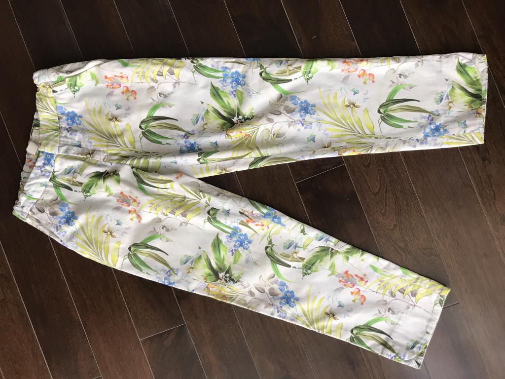 40. Хлопковые брючки ZARA, очень яркой и немаркой раскраски. Боковые прорезные карманы функциональные. В поясе есть утяжка. По бокам разрезы. Можно носить как брючки и как Капри. Есть маленький почти незаметный дефект. 100грн.